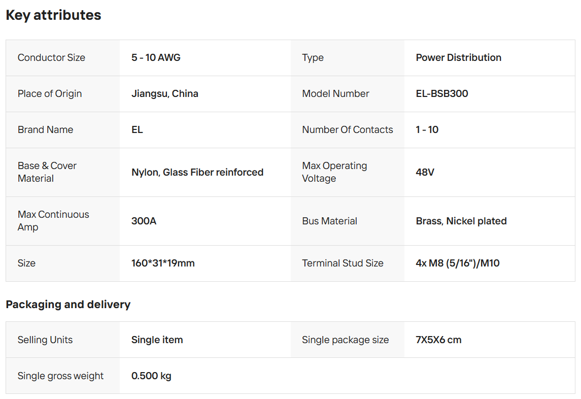 EL-BSB300 12-48V 300A Busbar M10 Stainless Steel Stud
