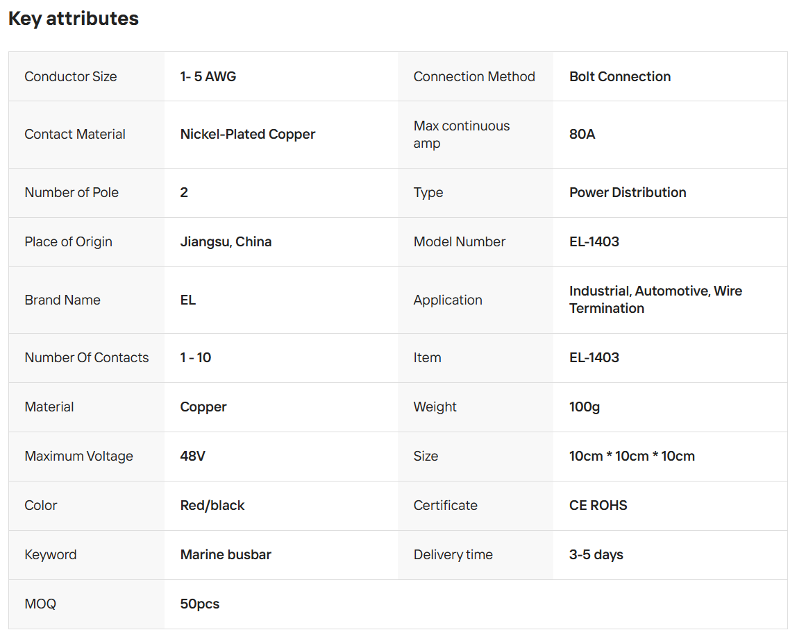 EL-BR1501 Factory Price 48v 100a Busbar With Current Collector for Car Rv Marine