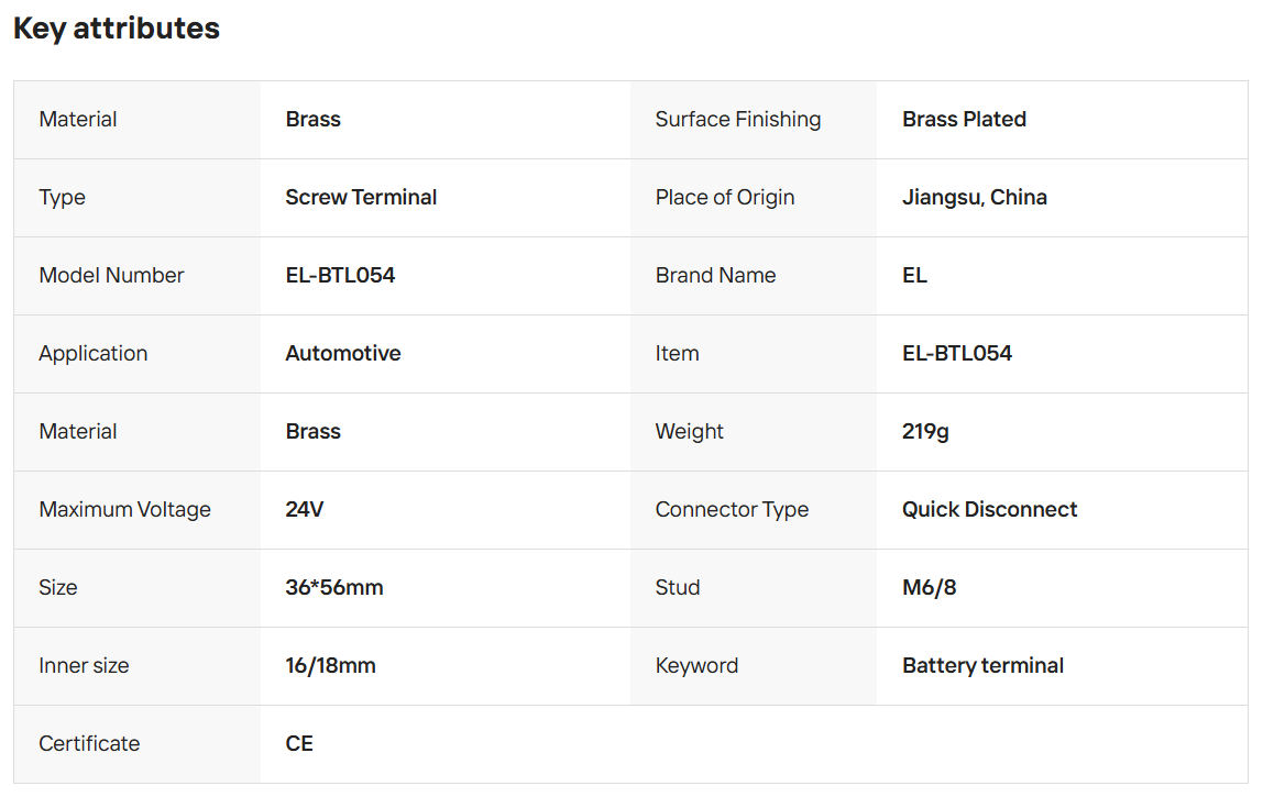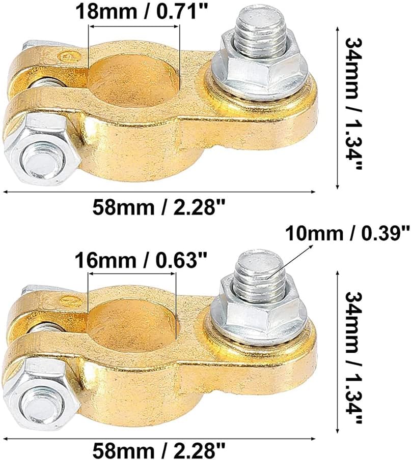 EL-BTL054 Brass 1 Pair Universal Battery Terminal Connectors Negative Positive Brass Battery Terminal for Cars, RV, Marine