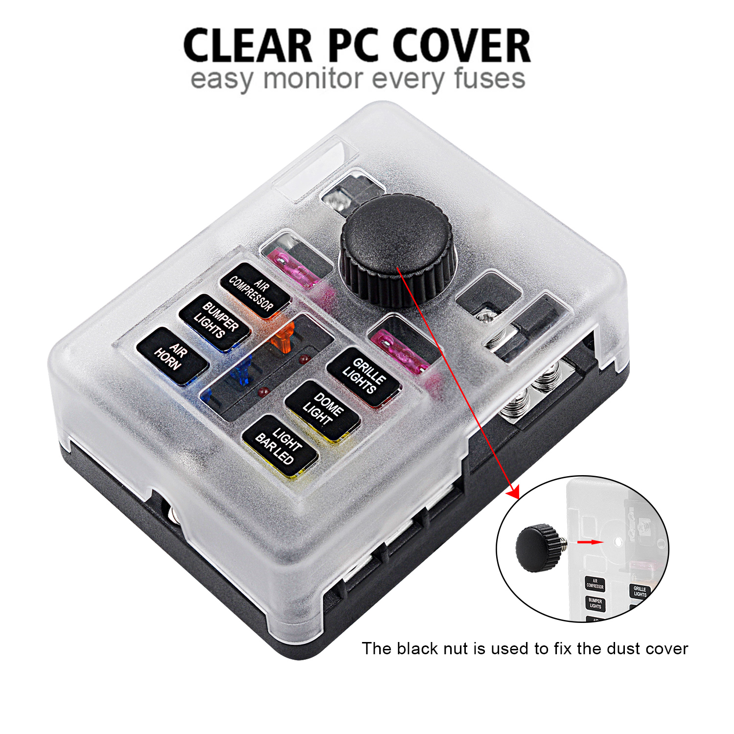 【4】 The product is designed with a red LED indicator light, corresponding to the electrical appliances connected to each fuse chip. When the fuse is disconnected, the red light will light up, which can immediately tell which fuse is broken, making it convenient to handle in a timely manner.