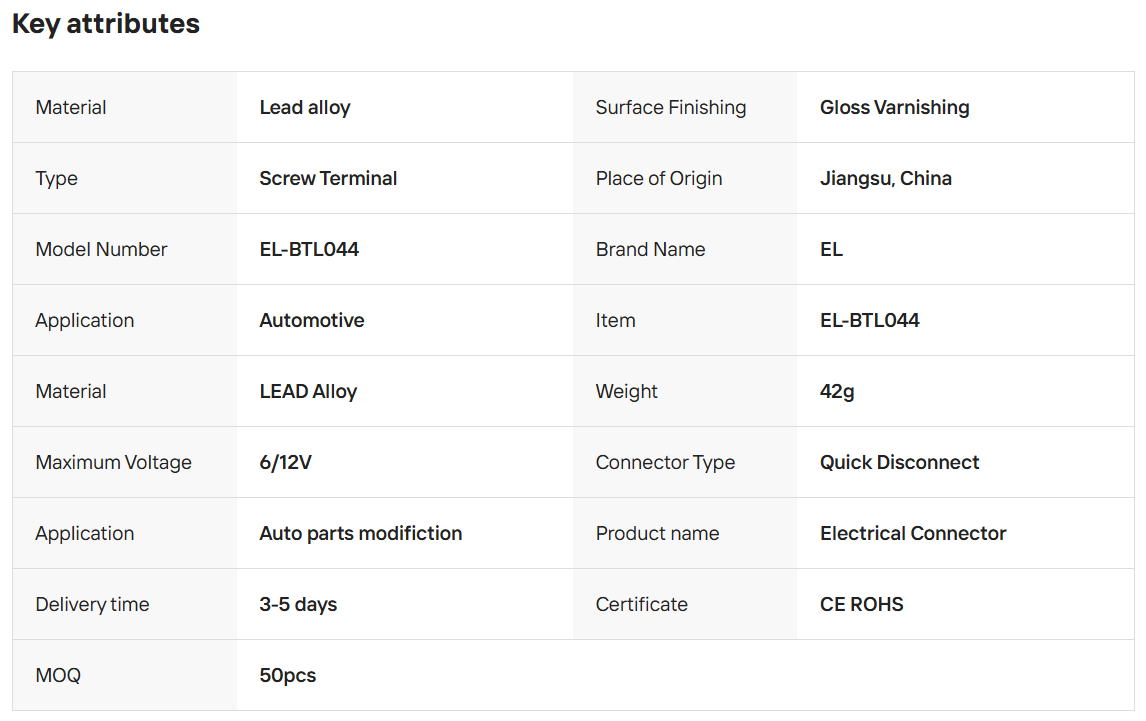 EL-BTL044 Lead Automotive Screw Terminal Converters Battery Terminal End