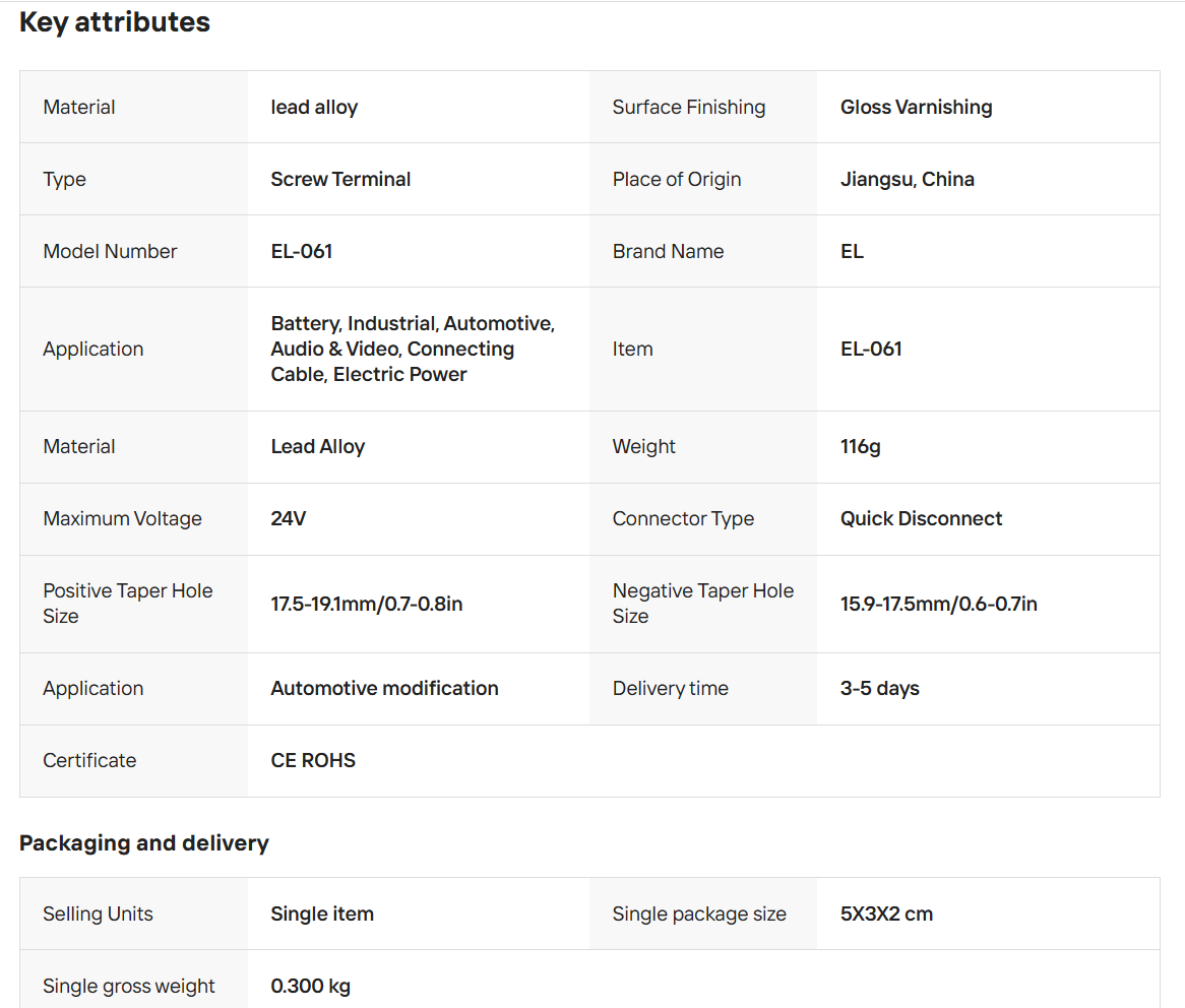 EL-BTL006 Manufacturers Large Stock Car Battery Terminal Large Lead Terminal for Sale