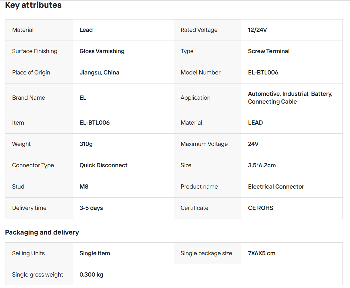EL-BTL006 Manufacturers Large Stock Car Battery Terminal Large Lead Terminal for Sale