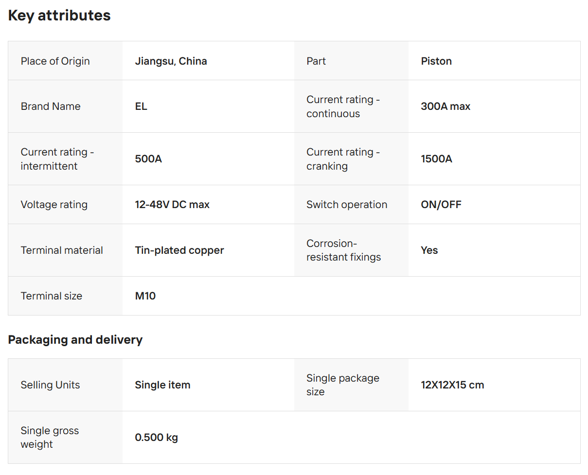 Intermittent Rating: 5 min. 500A