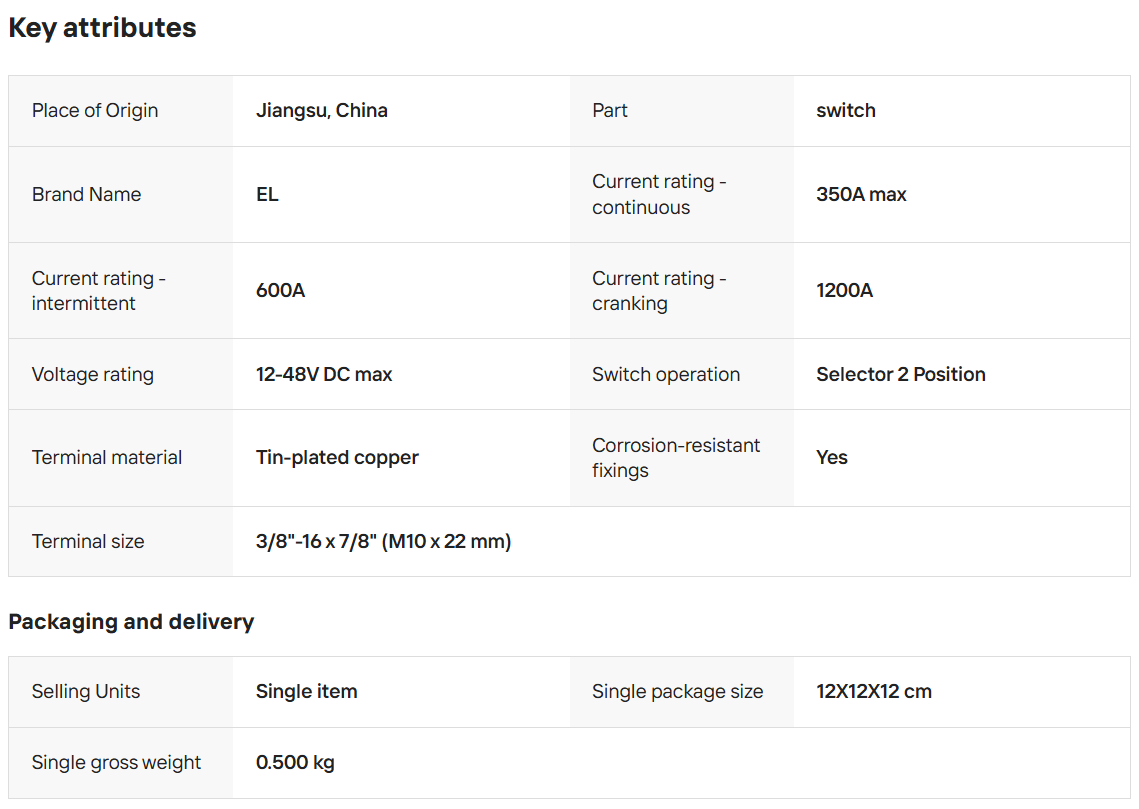 Intermittent Rating: 5 min. 600A