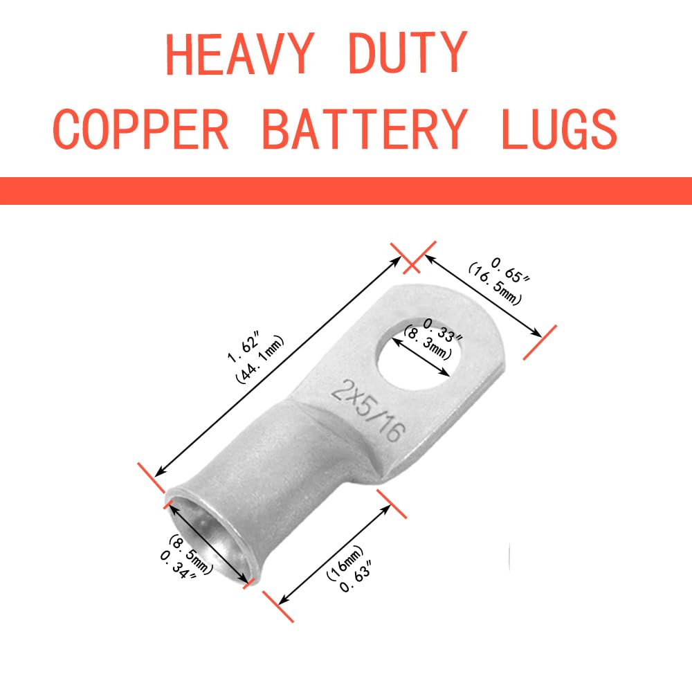 2 AWG 5/16'' Stud Tinned Copper Ring Terminals Battery Cable Ends Wire Lugs