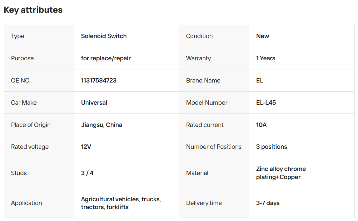 Product Attributes :