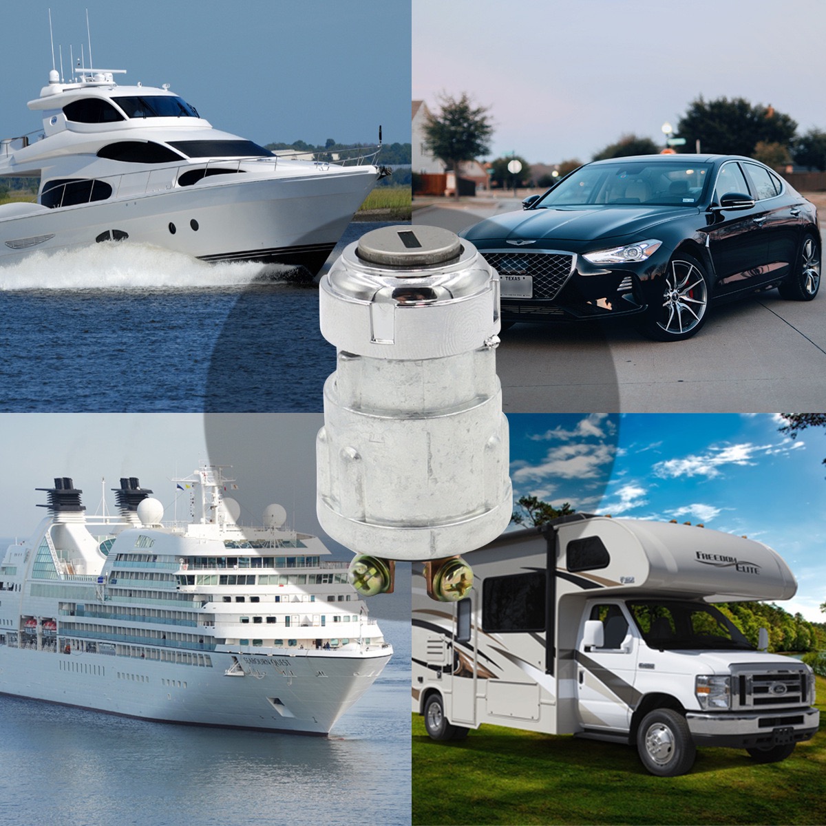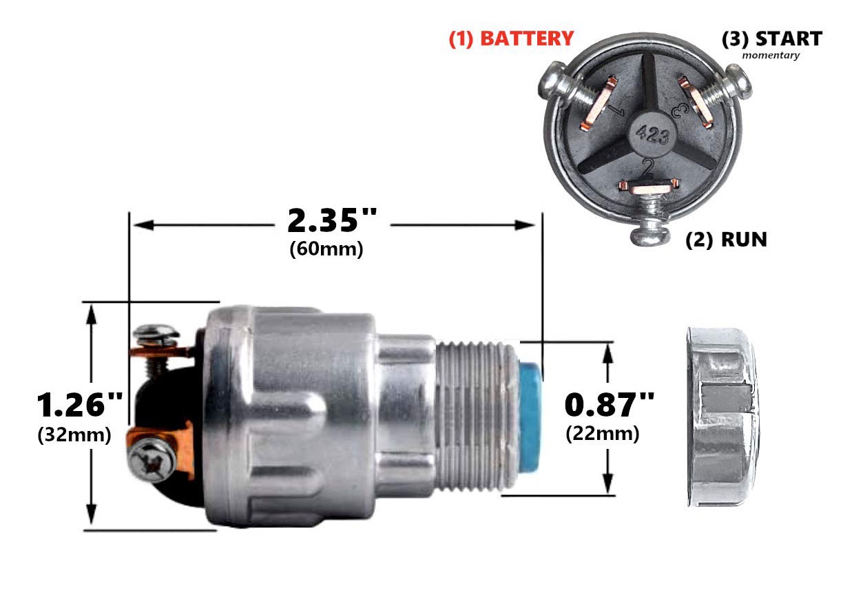 Universal Automotive Waterproof Ignition Switch with 3-Pin Key and Terminal Connections