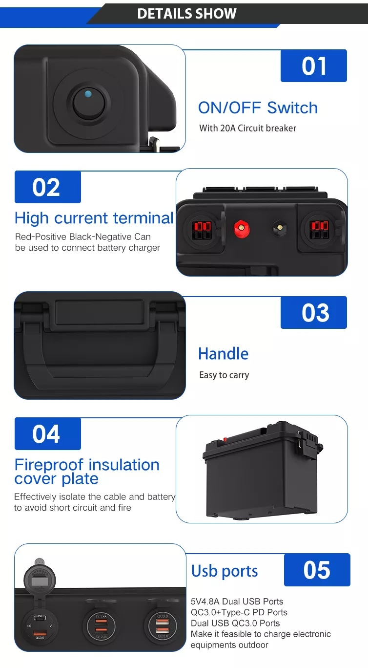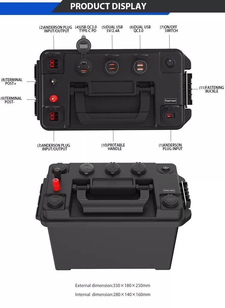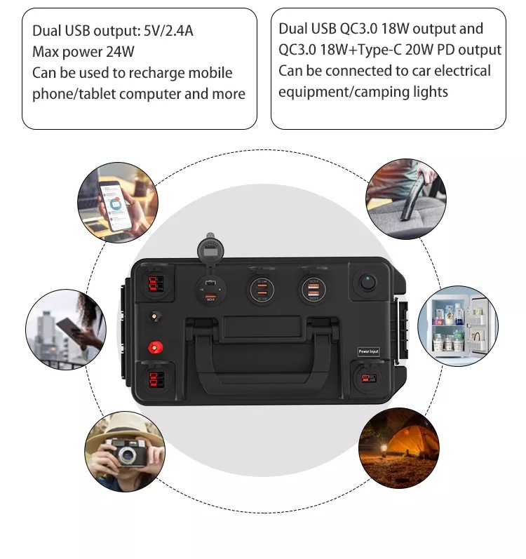 Outdoor multifunctional battery box portable storage battery box Emergency power USB quick charger
